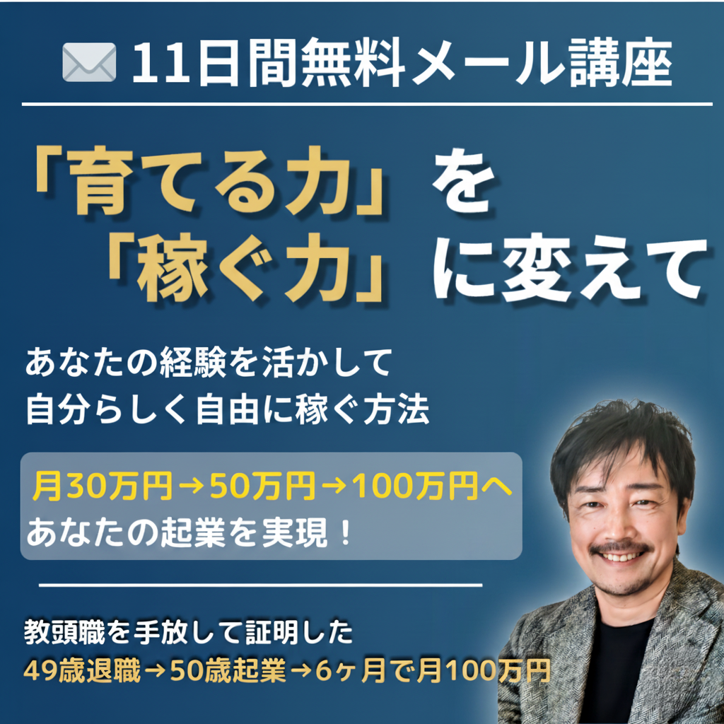 → 講座で学んだ内容をさらに深め、あなたの「育てる力」を「稼ぐ力」に転換する具体的な戦略を一緒に構築するチャンス。